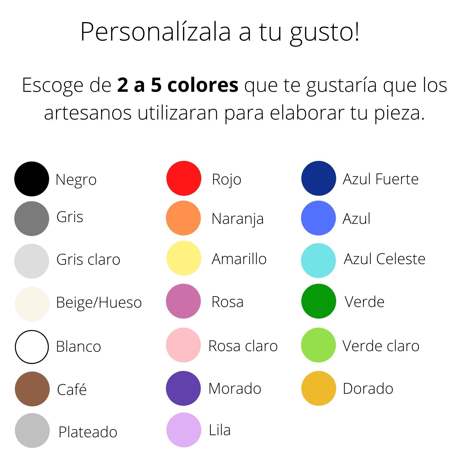 El artesano se va a basar en los colores de tu elección, sin embargo puede diferir a la de las fotos mostradas debido a que cada pieza es ÚNICA y su simbología y diseño varían según la creatividad del artesano.