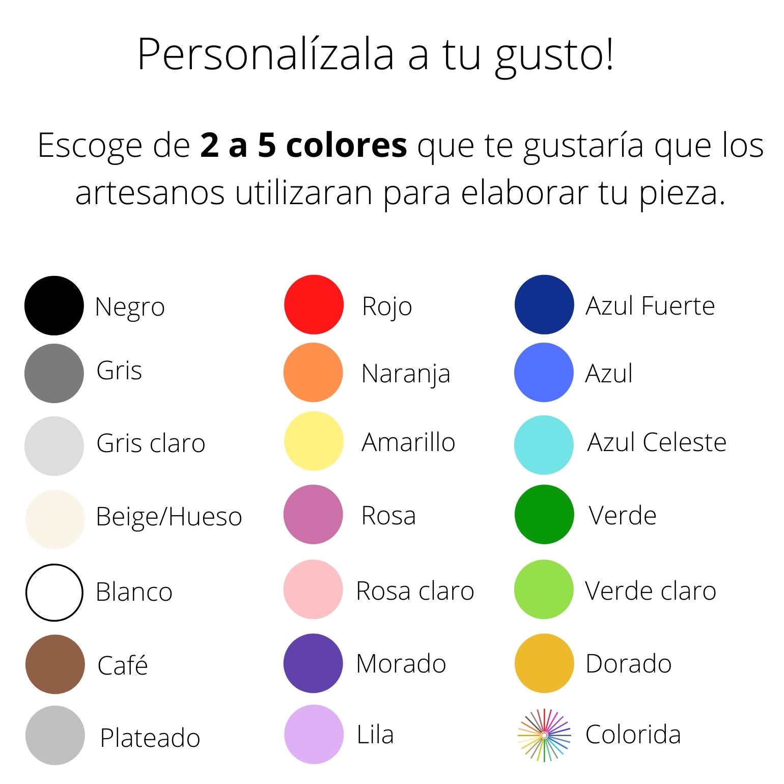 El artesano se va a basar en los colores de tu elección, sin embargo puede diferir a la de las fotos mostradas debido a que cada pieza es ÚNICA y su simbología y diseño varían según la creatividad del artesano.